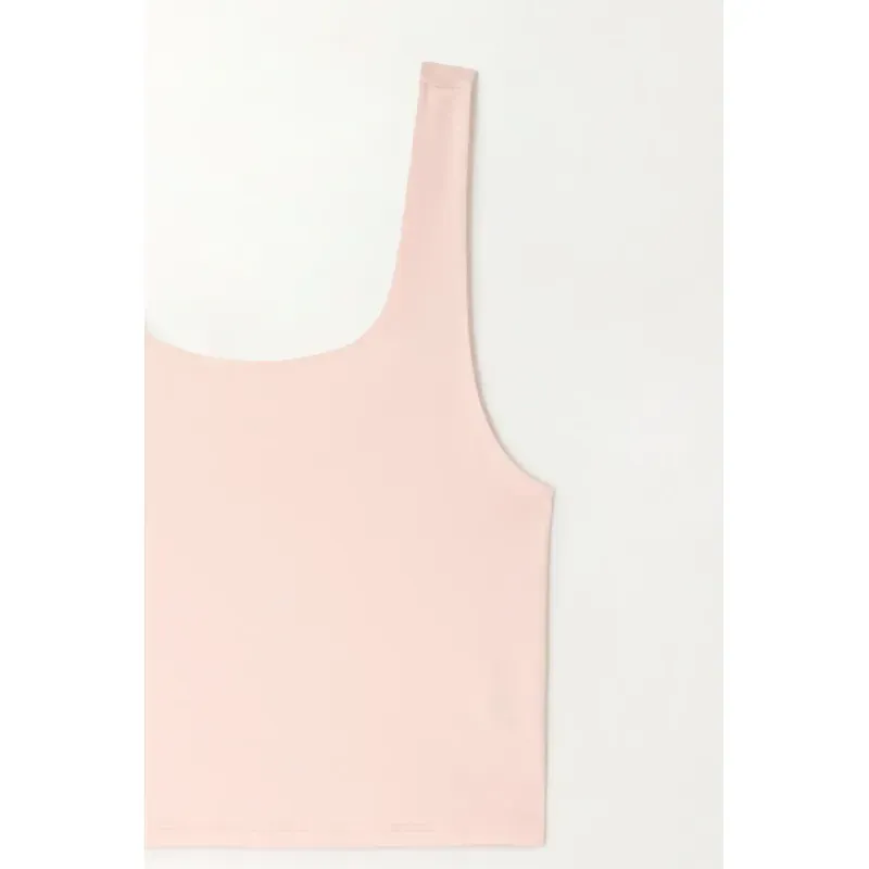 Esta camiseta tipo crop de mujer combina manga sisa, escote cuadrado y silueta corta, perfecta para lucir moderna y ligera en cualquier look veraniego o casual. Su tela de tacto frío aporta frescura y suavidad al contacto con la piel, manteniéndote cómoda durante todo el día.