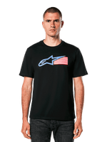 Camiseta estampada cortada y cosidaGráfico del logotipo inspirado en la bandera de EE. UU. en el frente.Impresión de mano suaveEstampado interior del cuello, etiquetado exterior.Garantía 30 días