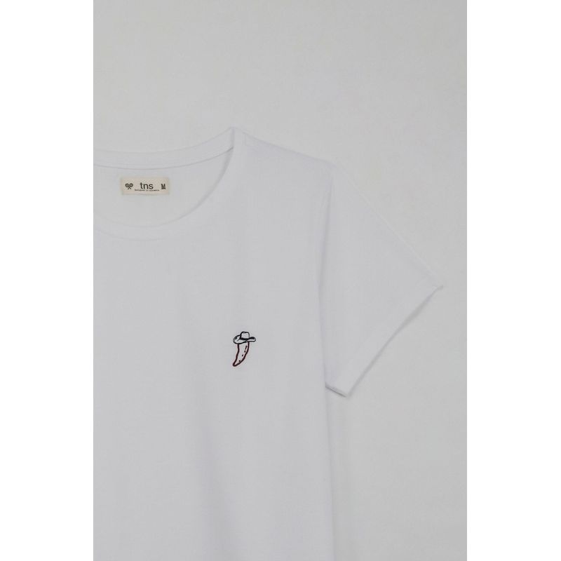 ¡La básica que nunca falla! Esta camiseta de silueta regular es el match perfecto entre comodidad y estilo, con un estampado localizado que le da ese toque cool y sin esfuerzo.