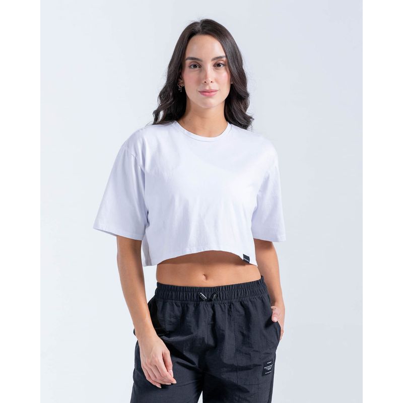 Crop top oversize de diseño relajado y moderno, ideal para un look cómodo y versátil. Su silueta amplia brinda libertad de movimiento, mientras que su tejido ligero y suave al tacto garantiza frescura durante todo el día. ¡Perfecto para combinar con cualquier outfit casual o deportivo!