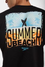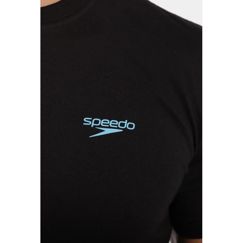 Esta camiseta manga corta negra está fabricada con los más altos estándares de calidad en algodón 100% para brindar comodidad y frescura. Cuenta con estampado multicolor Summer Beach Speedo en la parte trasera, y en el frente tiene nuestro icónico logo Speedo pequeño, un diseño que podrás combinar facilmente con otras prendas.