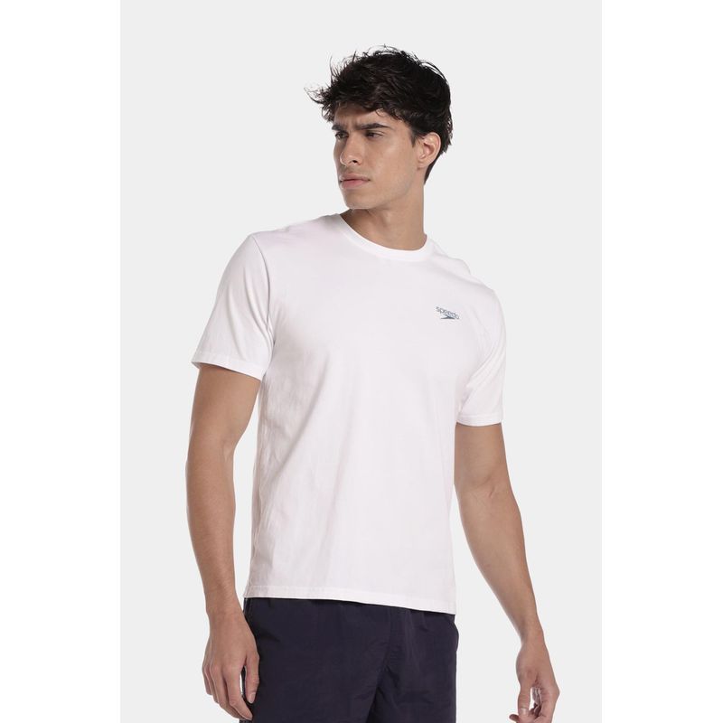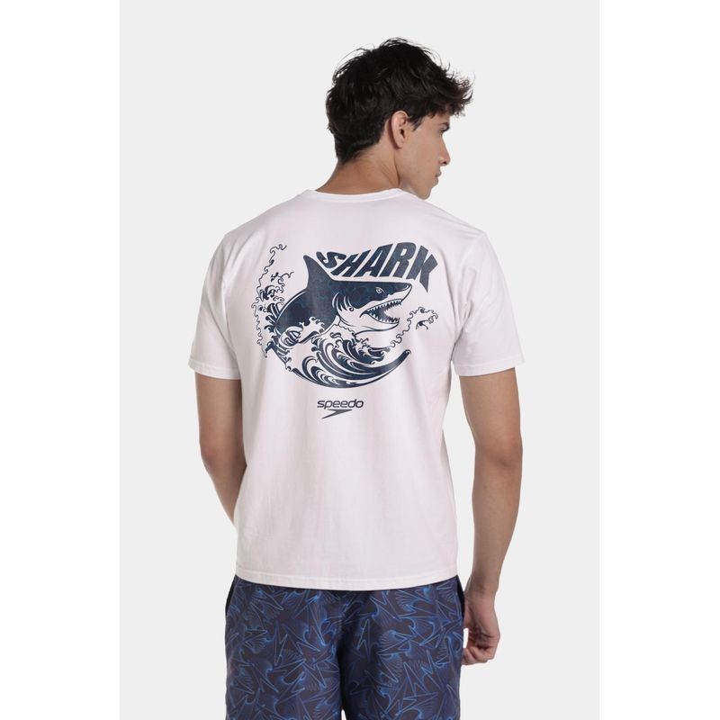 Esta camiseta manga corta blanca está fabricada con los más altos estándares de calidad en algodón 100% para brindar comodidad y frescura. Cuenta con estampado Speedo shark azul en la parte trasera y logo Speedo pequeño en la parte superior delantera, un diseño que podrás combinar con facilidad con otras prendas a donde vayas.