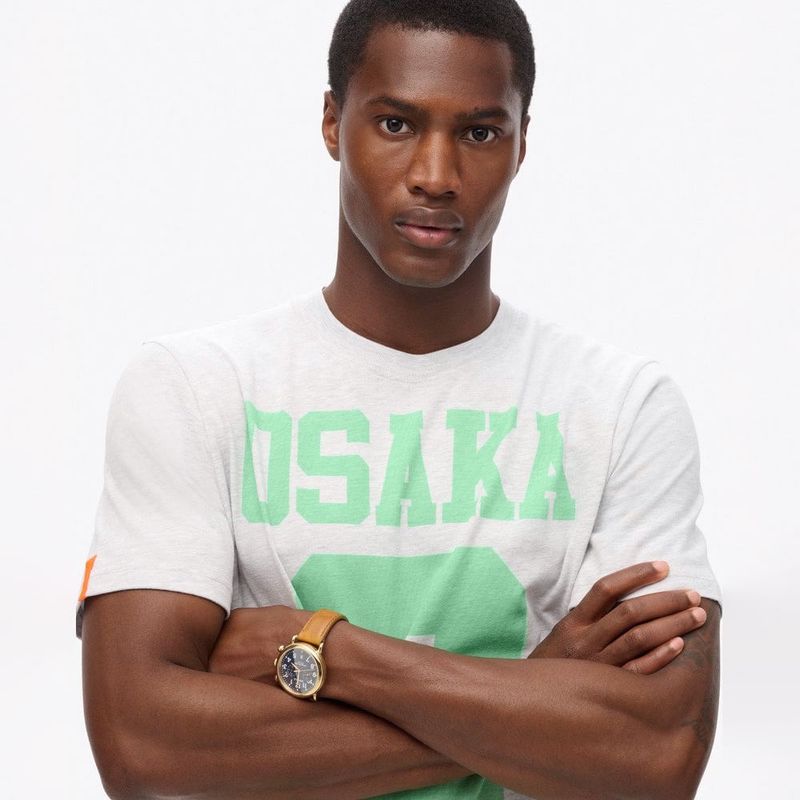 El estampado gráfico Osaka 6 es uno de los diseños más emblemáticos de los últimos 20 años. Por ello, no es de extrañar que hayamos decidido traer de vuelta este diseño clásico para convertirlo en el protagonista de una nueva colección conmemorativa en honor a nuestra trayectoria. Esta camiseta, una reinterpretación en clave contemporánea de un diseño clásico, combina las últimas técnicas de serigrafía al agua con una serie de detalles conmemorativos totalmente actualizados para ofrecerte ese toque tradicional tan genuino. Corte relajado: el corte clásico de Superdry. Una prenda ni muy estrecha ni muy holgada, simplemente perfecta. Elige tu talla habitual, Cuello redondo, Manga corta, Estampado Heritage Osaka 6, Ribetes conmemorativos de la marca, Etiqueta naranja clásica con el logotipo en la manga.