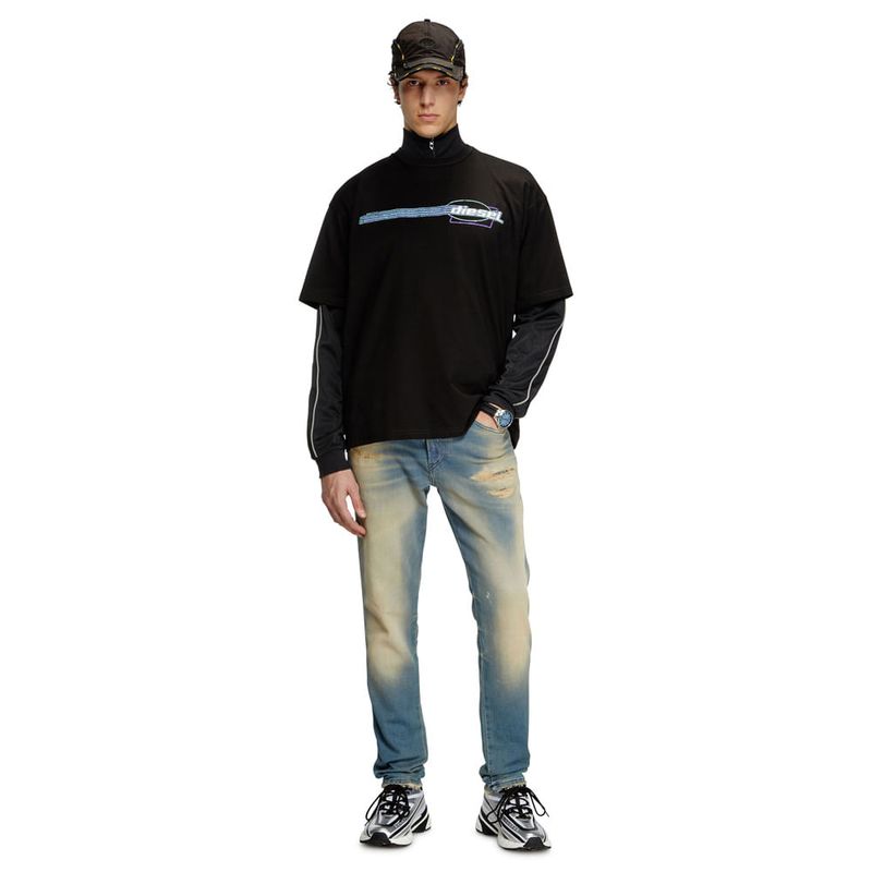 Camiseta Manga Corta Para Hombre T-Boxt-R16 DieselCamiseta para hombre con un fit relajado y ligeramente cuadrado, confeccionada en algodón orgánico. La parte delantera y trasera están decoradas con gráficos de logotipos en impresión digital y flocado al tacto.