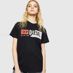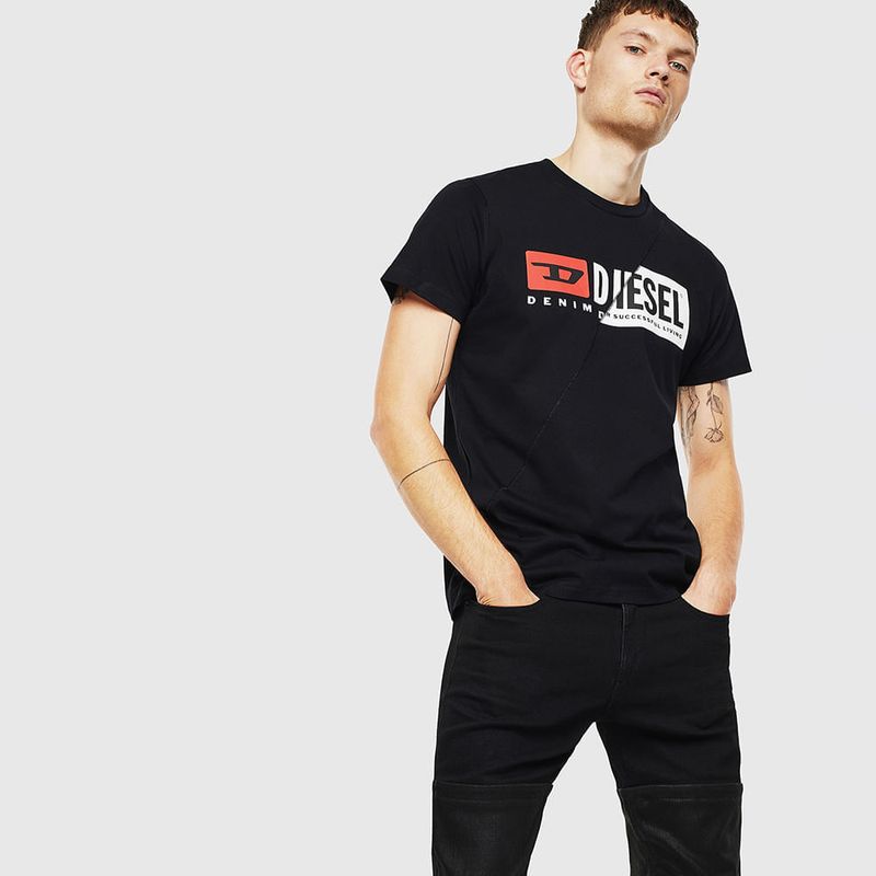 Esta Camiseta En Tejido Jersey De Algodón Ligero Presenta Un Corte Diagonal En El Delantero Unido Con Pespuntes Visibles Para Un Acabado Desgastado. El Estampado Engomado Sobre El Pecho Combina Dos Logotipos De Diesel.