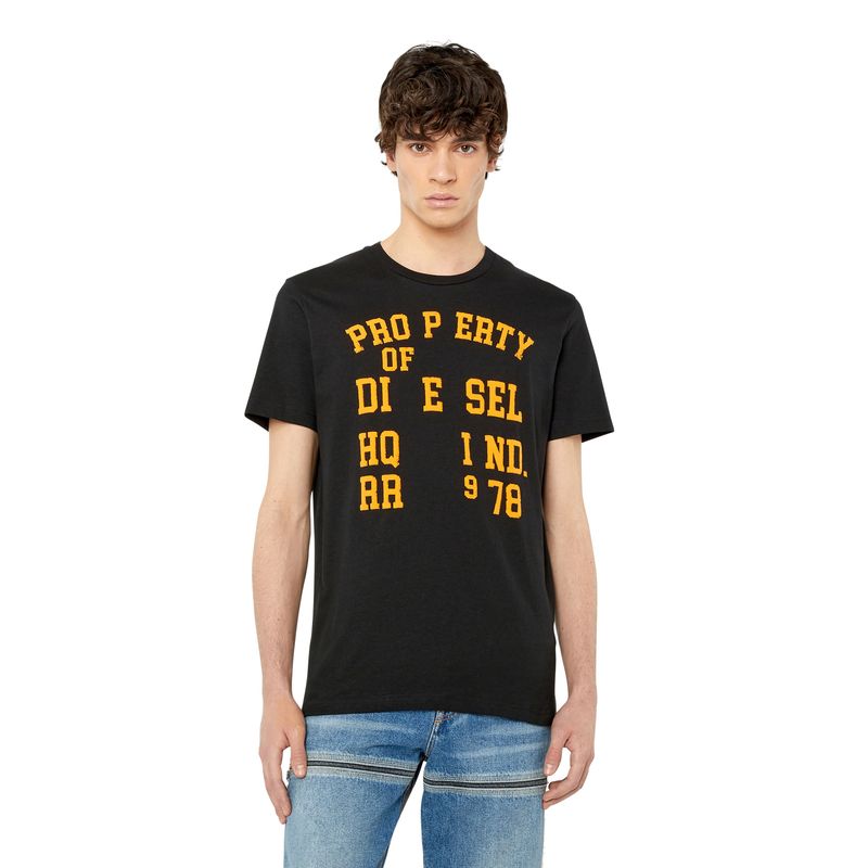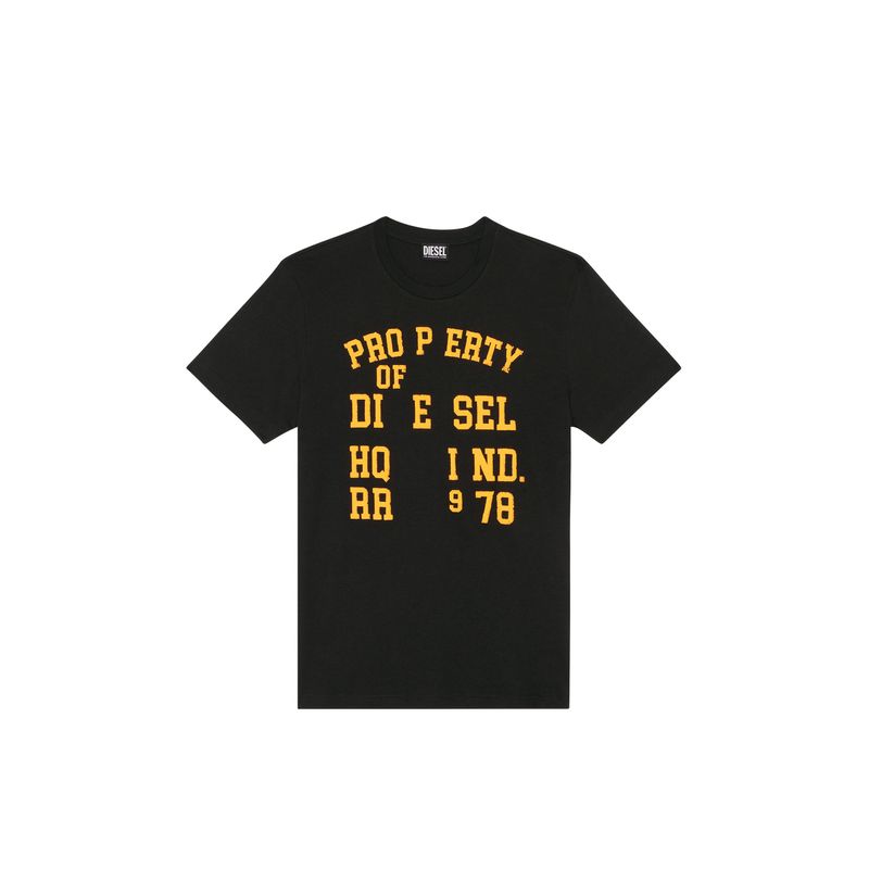 Camiseta para hombre confeccionada en tejido de algodón orgánico. Con un perfil entallado, tiene la marca "Property of Diesel" acolchada estampada en la parte delantera. -