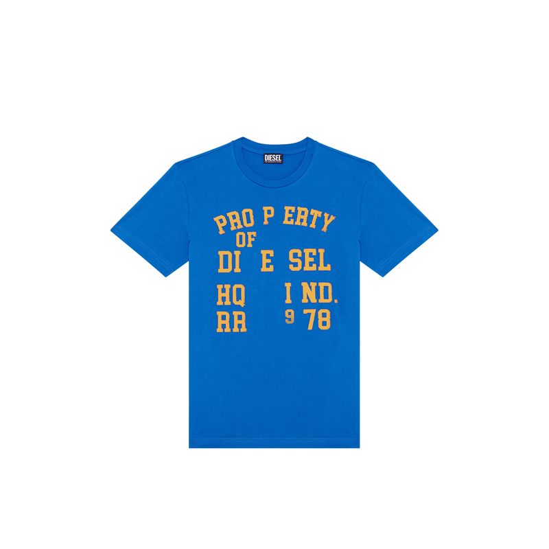 Camiseta para hombre confeccionada en tejido de algodón orgánico. Con un perfil entallado, tiene la marca "Property of Diesel" acolchada estampada en la parte delantera. -