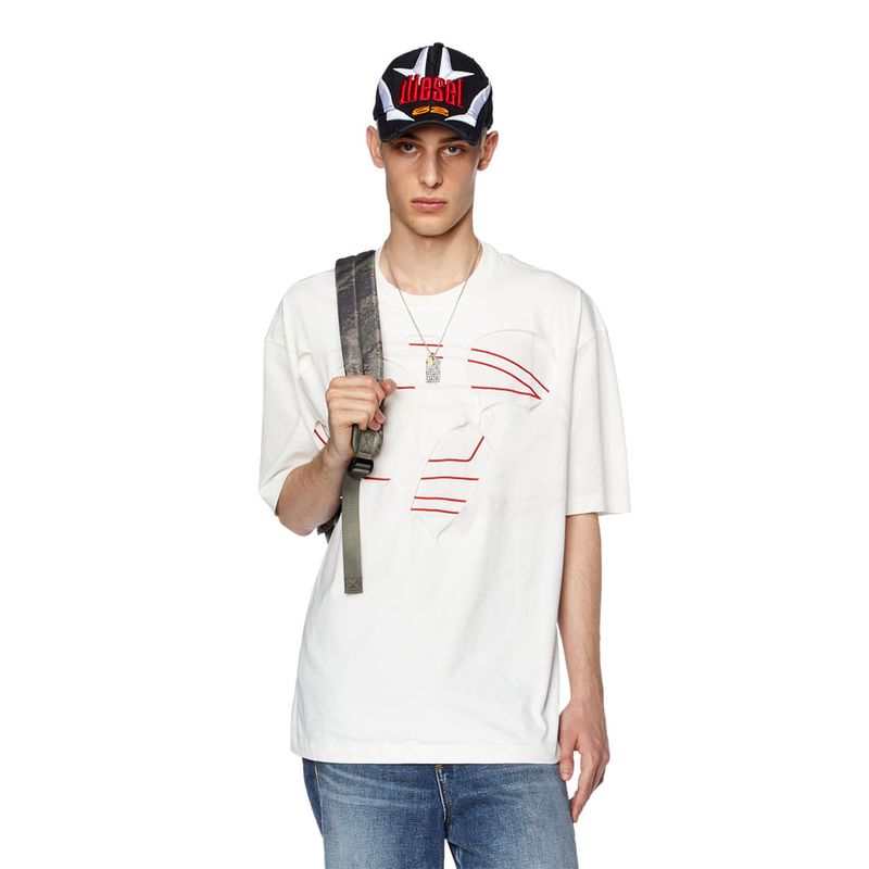 Esta camiseta holgada para hombre está confeccionada en tejido de algodón con un frente de doble capa. La parte superior está rasgada, lo que revela por debajo el logotipo oval D bordado grande. • Composición: 100%Algodón • País Origen: Tunicia • El modelo viste una talla L y mide 182 cm