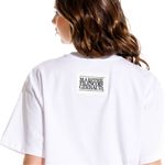 Camiseta con cuello redondo en rib y manga corta. Confeccionado en 100% algodón. Aplique delantero.La modelo mide entre 1.70 y 1.75, la prenda superior es talla s y la prenda inferior es talla 6.