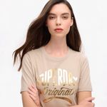 Camiseta Manga Corta Para Mujer Luxe Metallic Logo Relaxed Tee Superdry