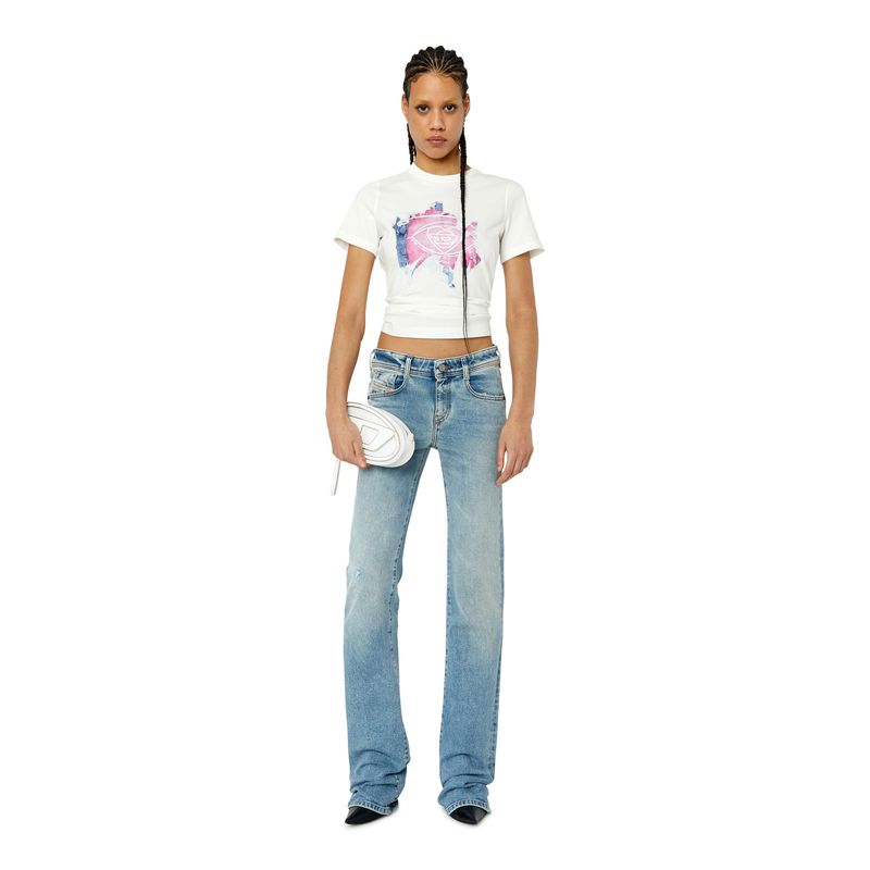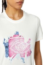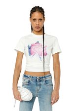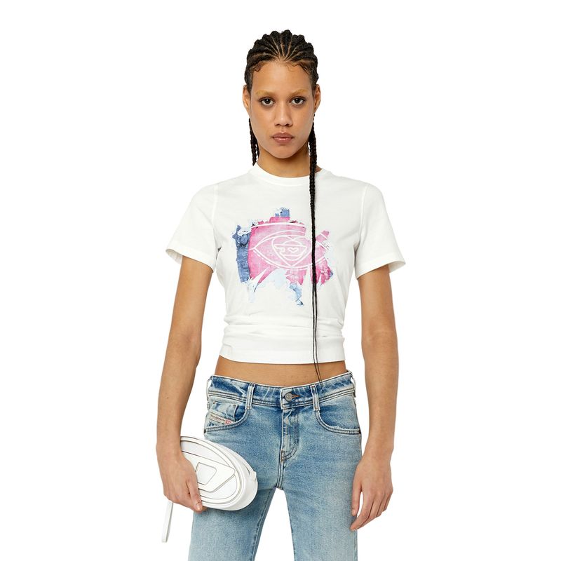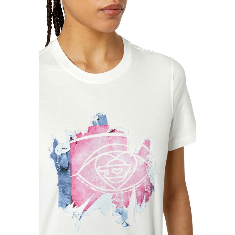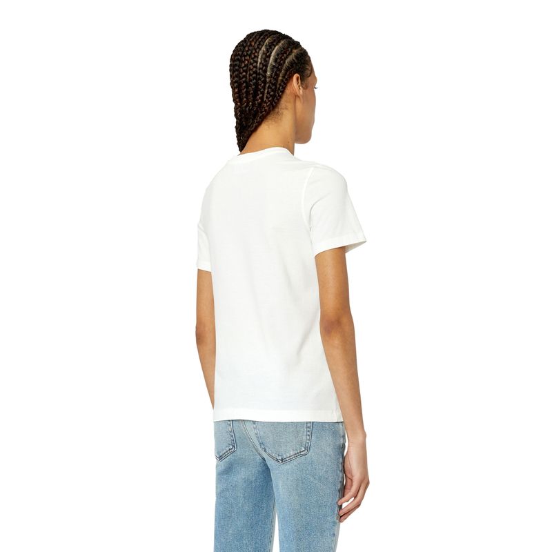 Diesel es una innovadora marca internacional de estilo de vida que produce una amplia colección de jeans, ropa y accesorios. Somos pioneros en denim y con el pasar de los años nos convertimos en una marca de ropa casual premium, siendo una verdadera alternativa en el mercado de lujo establecido. Somos una marca que representa la pasión, la individualidad y la autoexpresión. El Mundo DIESEL te espera. Esta camiseta de algodón para mujeres, de fit regular, presenta un motivo de logotipo gráfico que parece estar despegándose. El efecto está hecho a mano a través de procesos de varios pasos, que incluyen una capa de tejido impresa digitalmente y una técnica devoré. 100%Algodón País Origen: China