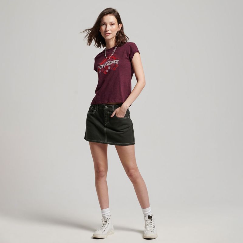 Los años 70 fueron una época fabulosa de diseños bohemios y paletas de colores frescos que se convertirían en auténticos emblemas de la moda contemporánea, y nos encanta jugar con estos temas nostálgicos. Esta camiseta de estilo años 70 es una manera elegante de llevar ese toque de sol y playa a tus looks informales del día a día. Corte entallado: con un diseño que se ajusta más al cuerpo y proporciona un look más elegante, Cuello redondo de canalé, Manga corta, Gráfico estampado, Etiqueta con el logotipo de Superdry.