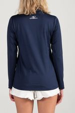 Este buzo de protección UV, viene en color azul, tiene una silueta clásica, adecuada para actividades tanto deportivas como recreativas al aire libre.