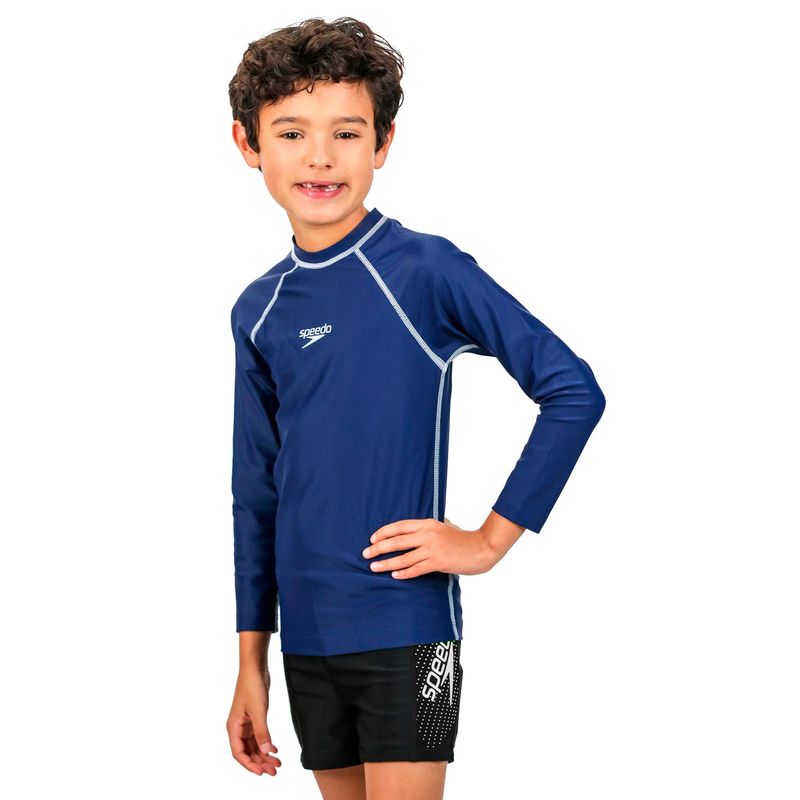 Camiseta manga larga, cuello redondo, tela de secado rápido.
