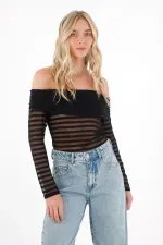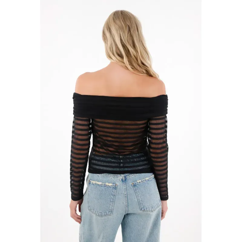 Su diseño de manga larga con cuello bandeja le da un aire moderno y femenino, mientras que la tela con textura se convierte en ese detalle sutil que marca la diferencia en tu look.