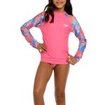 Camiseta Manga Larga Sunshine Fandango Floral Junior, el frente y mangas estampadas con un hermoso diseño floral multicolor en tonos azules y rosados.