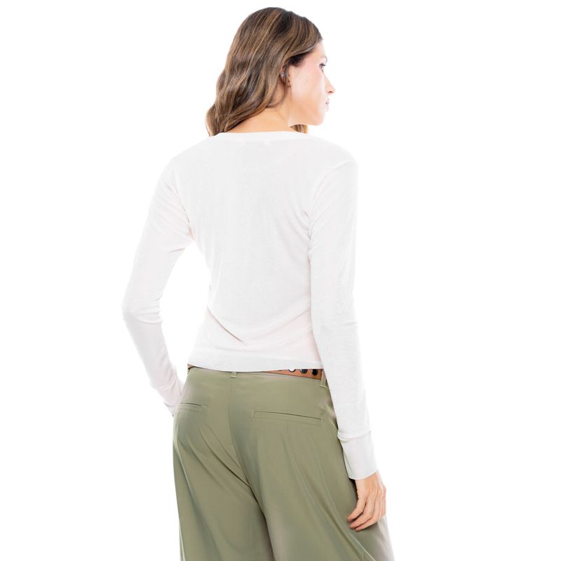 Camiseta básica de manga larga con un toque de elegancia y sofisticación. Su tejido ligero y suave ofrece una leve transparencia, lo que la hace perfecta para combinar con diferentes estilos y ocasiones. Ideal para usar en capas o como prenda principal, esta camiseta es una excelente opción para cualquier mujer que busque comodidad y estilo. color blue nace en 1984, fue creada para ser una marca honesta y familiar, la cual se enfocaba principalmente en la producción y exportación de ropa. hoy somos un equipo que trabaja con pasión y hemos cambiado completamente nuestra filosofía. nuestra marca está hecha para ambos géneros con un estilo muy nuestro. somos una empresa colombiana con experiencia en el mercado a través de la comercialización de prendas de vestir.