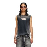 Camiseta Manga Sisa Para Hombre T-Brico Diesel. Esta camiseta sin mangas de fit entallado para hombre forma parte del desfile Primavera Verano 2024. Confeccionada en tejido de algodón de textura cruda, se ha actualizado hábilmente con un tratamiento desteñido: un homenaje a los aspectos desgastados de Diesel. Cuenta con una Oval D metálica en relieve insertada en el recorte del pecho para dejar entrever un poco de piel.