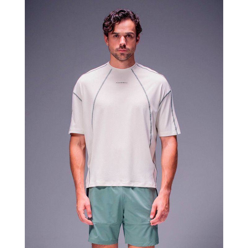 Camiseta deportiva de silueta oversized boxy, con estampado doble en el frente y la espalda. Elaborada en tejido de malla que brinda frescura, cuenta con tecnología antibacterial y secado rápido. Diseño versátil que funciona como prenda casual o deportiva. Perfecta para entrenamientos y uso diario.