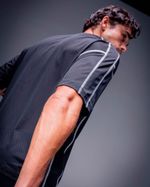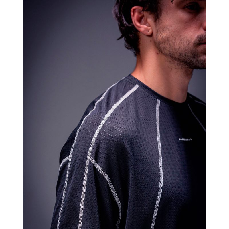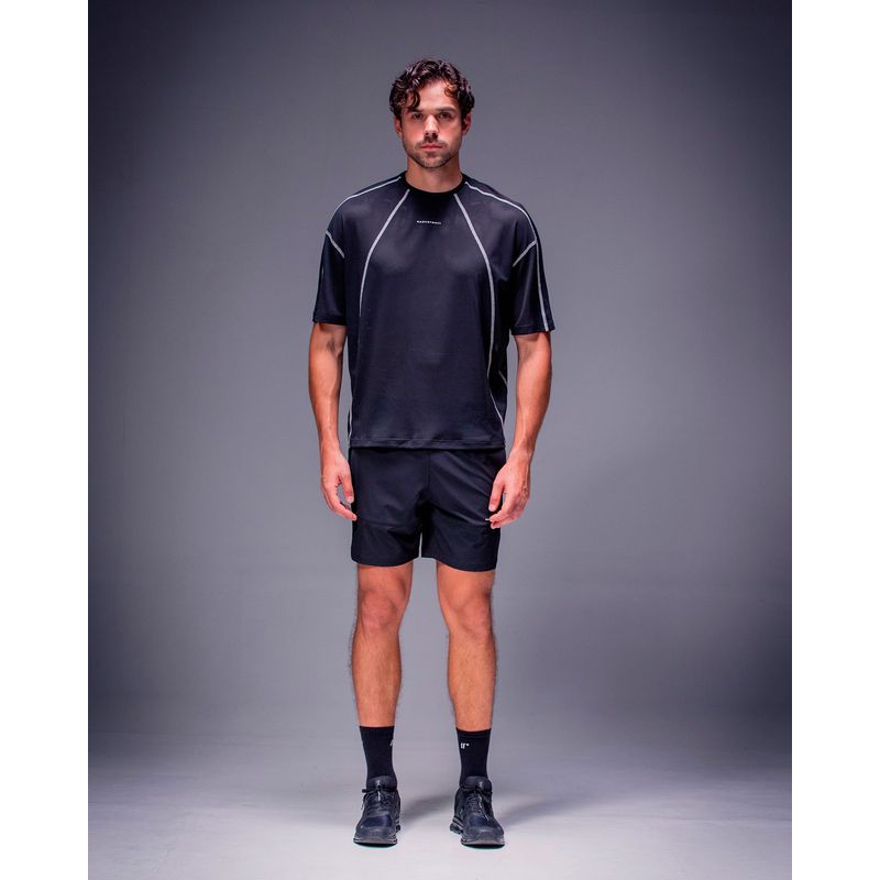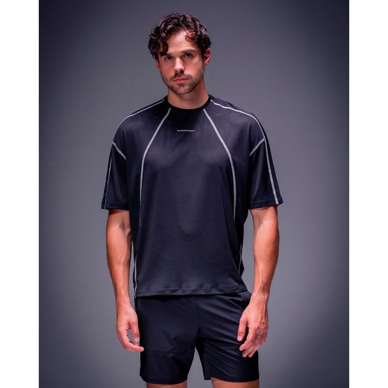 Camiseta deportiva de silueta oversized boxy, con estampado doble en el frente y la espalda. Elaborada en tejido de malla que brinda frescura, cuenta con tecnología antibacterial y secado rápido. Diseño versátil que funciona como prenda casual o deportiva. Perfecta para entrenamientos y uso diario.