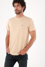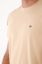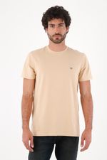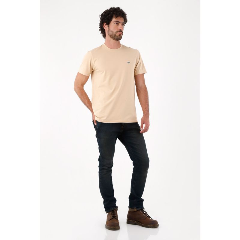 Una camiseta esencial limpia en tono beige arena donde el protagonista es el detalle: un pequeño bordado azul al pecho que suma carácter deportivo urbano sin gritarlo. El algodón 95% con 5% elastano acompaña el movimiento y se siente cómodo todo el día. El corte recto y fit clásico caen prolijos, creando una silueta relajada fácil de combinar. El cuello redondo acanalado y las costuras tonales mantienen el look minimal, mientras el bajo ligeramente curvo suaviza la línea y aporta fluidez.