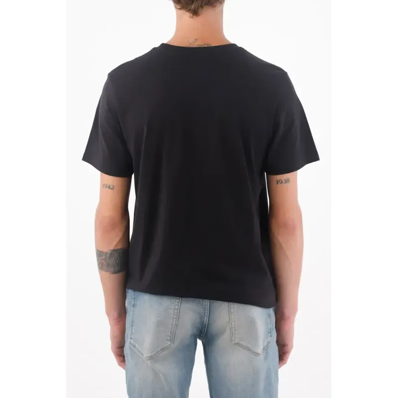 Negro, simple y con actitud. Esta tshirt abraza el minimalismo urbano: un detalle tonal en el pecho le da identidad sin estridencias y el cuello redondo mantiene la línea limpia para todo el día. Su tejido de algodón con un toque de elastano se siente cómodo y el fit regular cae recto sin pegarse, logrando un look relajado pero cuidado que combina con todo.