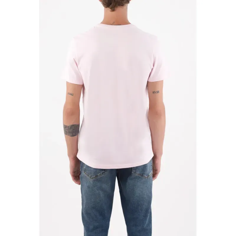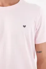 Un toque de cancha en clave minimal. Esta camiseta básica para hombre en algodón pone el acento donde importa: un mini ícono de raqueta al pecho que suma identidad deportiva sin gritar. El rosa pastel limpia la paleta y aporta frescura urbana, fácil de combinar en tu rotación diaria. El cuello redondo y las mangas cortas dibujan una silueta de fit regular muy llevable, mientras el tejido de algodón de tacto natural mantiene el look cómodo y limpio todo el día.
