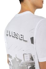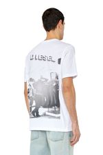 Camiseta blanca para hombre hecha de tejido de algodón. Modelo de fit regular con estampado fotográfico desteñido en la parte trasera. Corte regular - El modelo viste una talla L y mide 182 cm 100%Algodón País Origen: Vietman