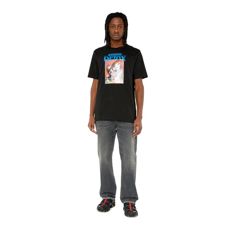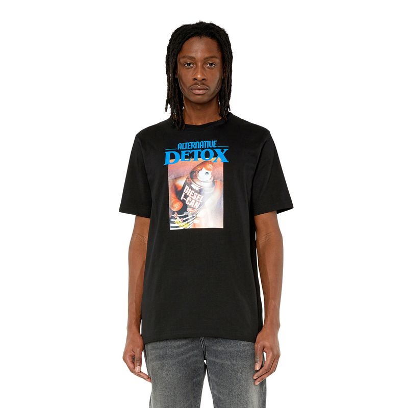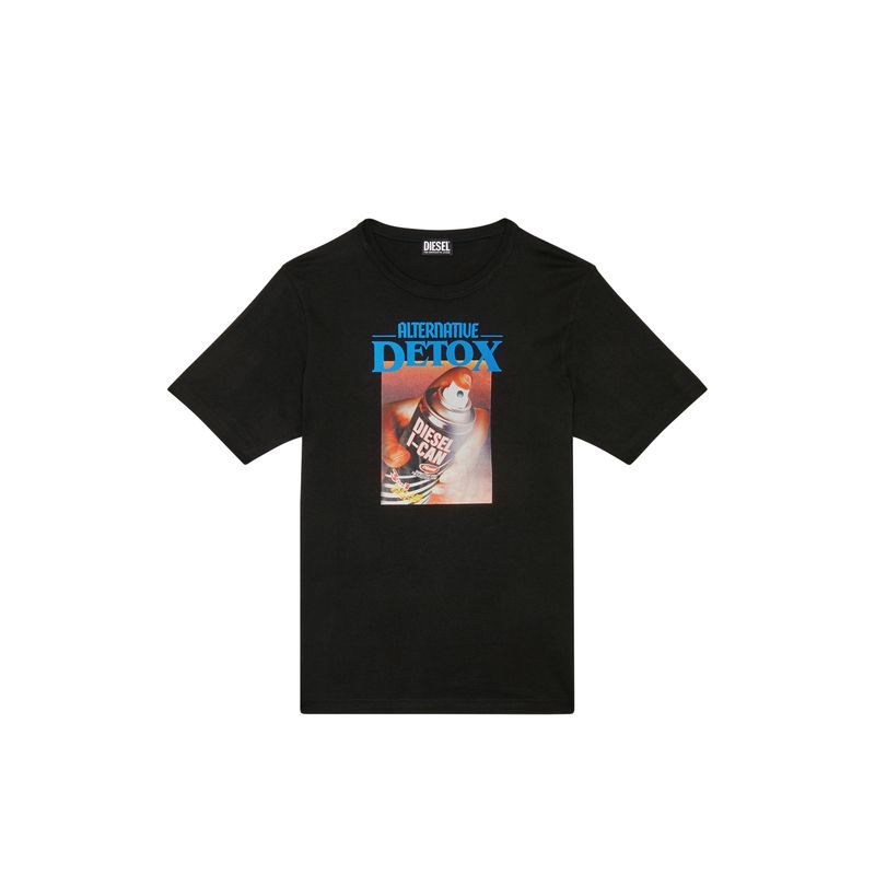 Camiseta de algodón para hombre con un fit regular. El modelo está estampado con un divertido gráfico que presenta una lata de desinfectante en aerosol con el logotipo y las palabras "Alternative Detox". Corte regular - El modelo viste una talla L y mide 182 cm 100%Algodón País Origen: Vietman