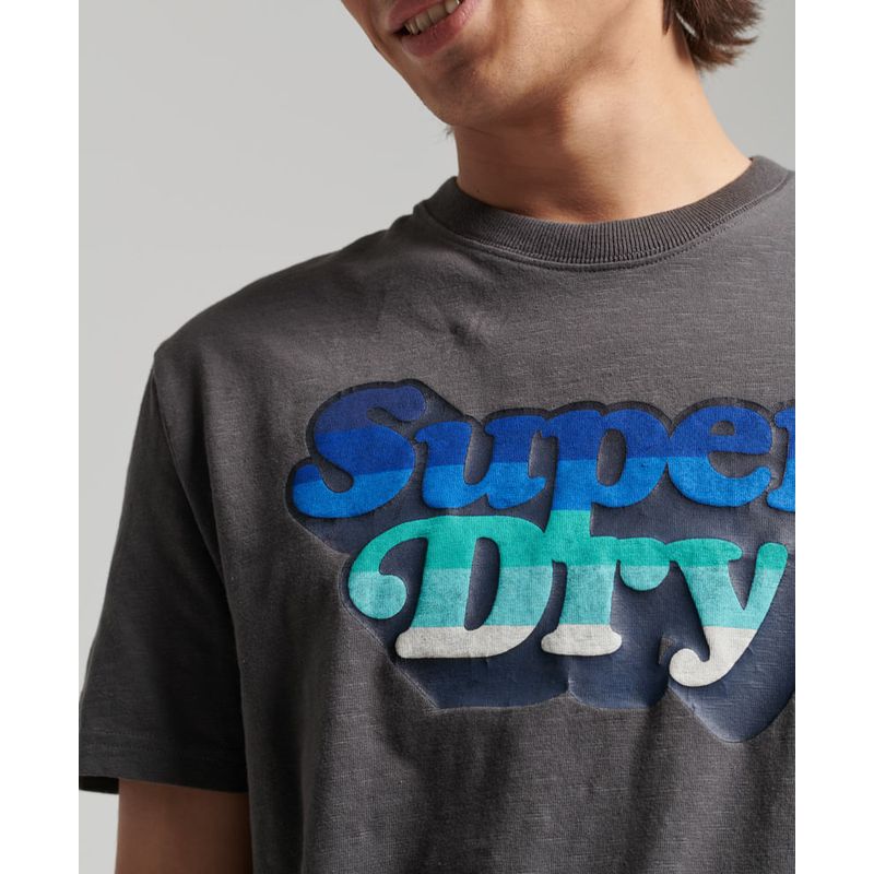 Multiplica el impacto de tus looks informales con esta camiseta que añadirá un toque veraniego a cualquier conjunto. Gracias a su estampado nostálgico y a su diseño clásico, hará que sientas ese estilo veraniego todo el año. Corte relajado: el corte clásico de Superdry. Ni muy estrecho, ni muy holgado, simplemente perfecto. Elige tu talla habitual, Cuello redondo de canalé, Manga corta, Logotipo estampado con efecto desgastado, Etiqueta con el logotipo de Superdry.