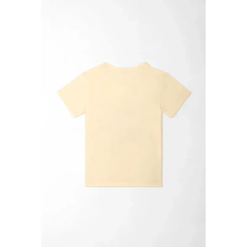 Fit & Styling Llévala por dentro de un jean recto de tiro alto en índigo y suma una sobrecamisa ligera en tono arena; un conjunto sencillo y actual donde el estampado vintage queda en primer plano.