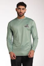 Fabricada con materiales de alta calidad y ajuste clásico, este rashguard masculino verde es ideal para realizar prácticas acuáticas.
