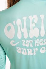 Este Buzo de protección solar aguamarina con estampado O'Neill blanco en la parte trasera, y pequeño en la parte delantera, le da un toque de estilo y comodidad a tus días al aire libre y en el agua.