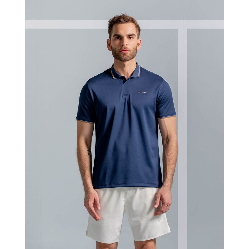 Camiseta Tipo Polo Detalles Contraste, Color Azul Oscuro Para Hombre