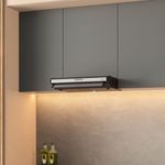 Campana horizontal Inox Negra de 60 cm de ancho con 3 velocidades de operación. Cuenta con un filtro atrapagrasa que te ayuda a disminuir la cantidad de grasa que se adhiere a la superficie de tu cocina. Filtro de Carbón activado que minimiza considerablemente los malos olores, iluminación halógena de alto alcance. Avanzado sistema de succión que logra bajos niveles de ruido durante su funcionamiento para más comodidad mientras cocinas.