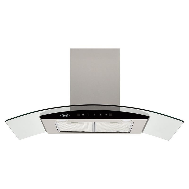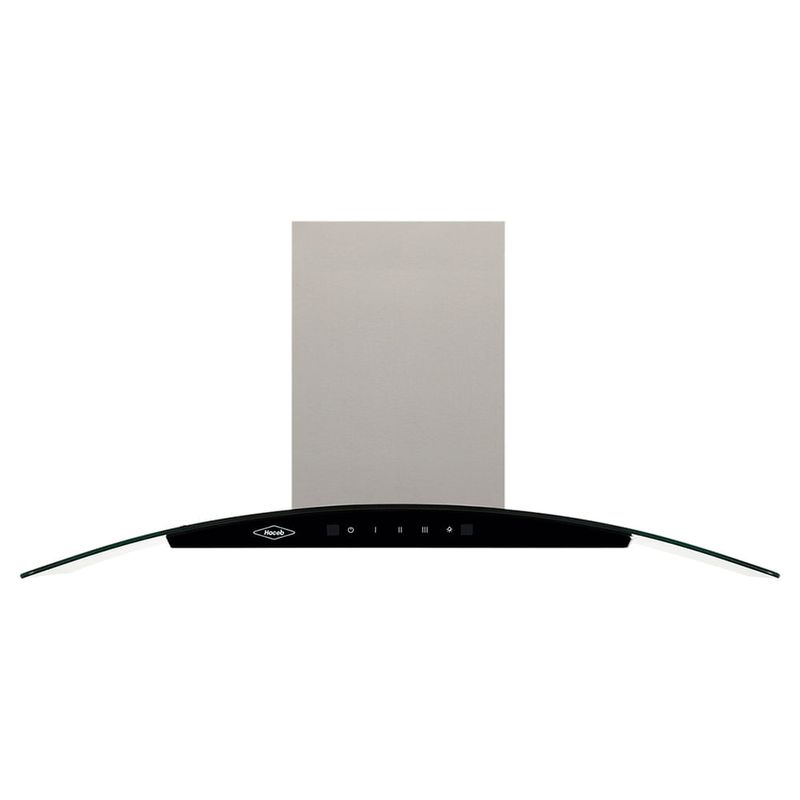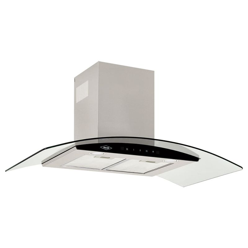 Campana península de 90cm en acero inoxidable con ala de vidrio templado, combinando un diseño moderno y de alto rendimiento.