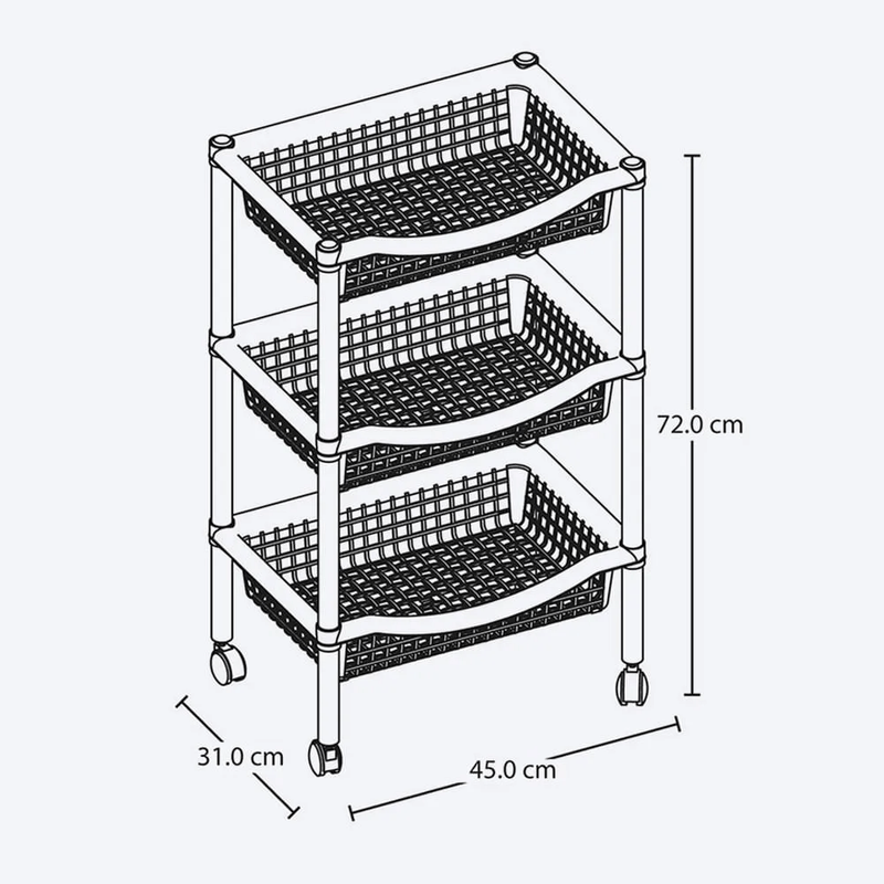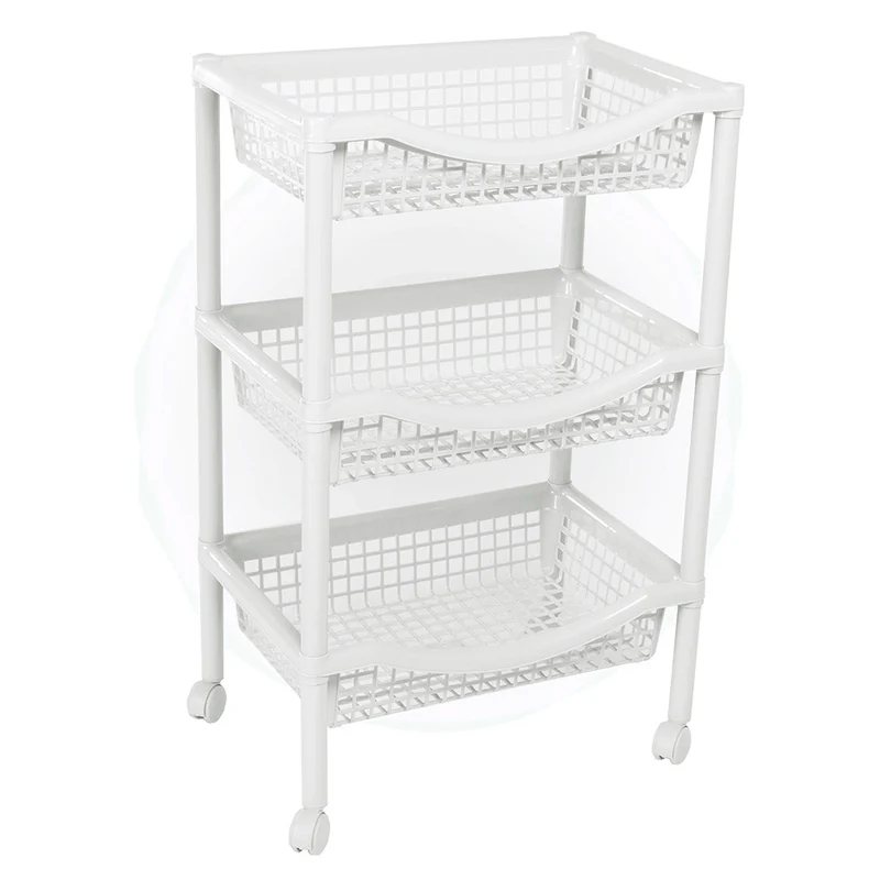 Con rodachines, ideales para organizar, desarmable, fácil de armar, propia para diversos ambientes Canasta móvil rectangular que incluye tres niveles para organizar. Tiene rodachinas. Fácil de armar, no requiere herramientas. Ideal para organizar en casa todo tipo de objetos. No se oxida y es fácil de limpiar. Úsala en cocina, baños, cuartos de niños, como organizador auxiliar. Es tejida y permite oxigenar los productos o alimentos que guarde.