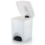 Práctico sistema de pedal que ofrece mayor comodidad e higiene. Tamaño que se adecúa a espacios reducidos. Esquinas redondeadas y superficies lisas que facílitan la limpieza y evitan la concentración de moho y suciedad. Sencillo sistema para ajustar la bolsa en el borde superior del contenedor. Dos canecas ubicadas una al lado de la otra, se convierten en el centro de reciclaje del hogar.