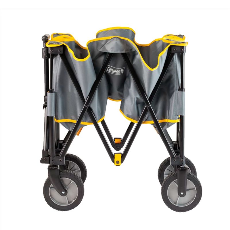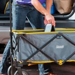 Cargar su equipo al lugar de campamento es aún más fácil con Coleman® Camp Wagon. Este vagón duradero y resistente tiene 5 pies cúbicos. ft. de espacio de carga, perfecto para transportar sacos de dormir, hieleras, equipos deportivos e incluso su tienda de campaña. El tejido de poliéster resistente y resistente, la parte inferior reforzada desmontable y el marco de acero brindan un transporte confiable temporada tras temporada. El mango se conecta directamente al eje, brindándole un control superior. Después de desempacar todo, el vagón se pliega en forma de acordeón y cabe en el estuche de transporte incluido.