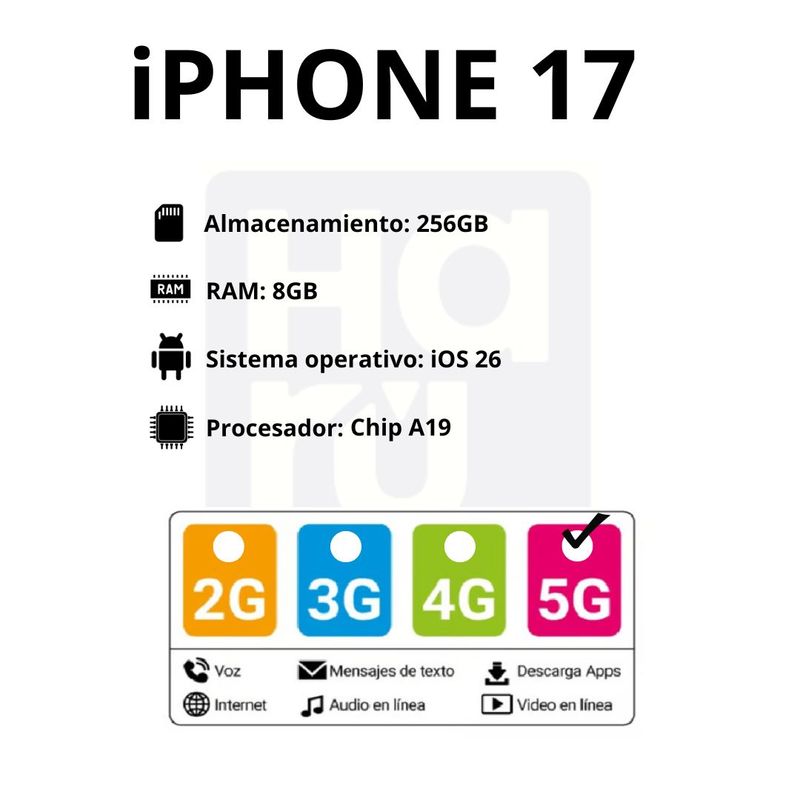 iPhone 17. Aún más sorprendente. Aún más resistente. Pantalla ProMotion de 6,3 pulgadas, Ceramic Shield 2, cámaras traseras de 48 MP, cámara frontal Center Stage, chip A19 y más. El iPhone 17 viene en cinco espectaculares colores, con una pantalla de 6,3 pulgadas más brillante y frente de Ceramic Shield 2, que es 3 veces más resistente a los rayones. Navegación fluida con ProMotion de hasta 120 Hz, mejor contraste en exteriores con un pico de brillo de 3.000 nits y un 33% menos de reflejos.