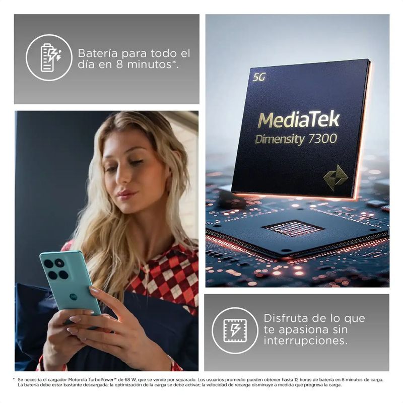 Haz más con la batería de 5200mAhRecarga en un instante con la impresionante velocidad de carga TurboPowe de 68W. que te brinda energía por más de un día