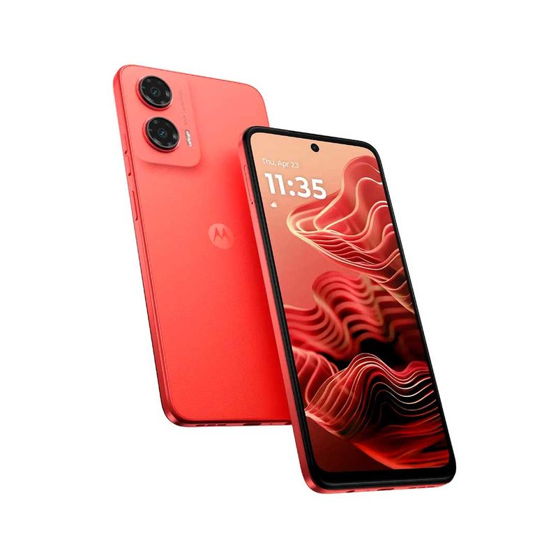 Celular Motorola G35, color naranja, memoria de 256GB y 8GB Ram, cámara principal de 50MP y frontal de 16MP, pantalla IPS de 6,72", Unisoc T760 2.2 GHz, Batería de 5100 mAh, Android 14