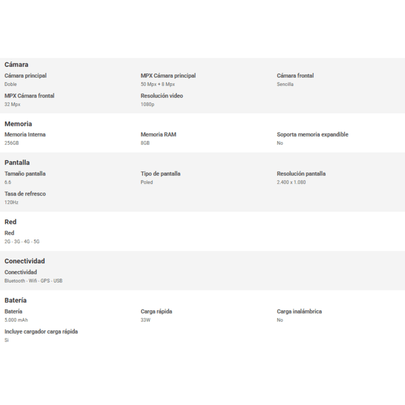 Con 256 GB de memoria interna y 8 GB de RAM, tendrás espacio más que suficiente para almacenar tus aplicaciones, fotos y videos. Su diseño en color azul no solo es atractivo, sino que también cuenta con una clasificación IP54, lo que lo hace resistente a salpicaduras y polvo, brindando durabilidad en el uso diario.