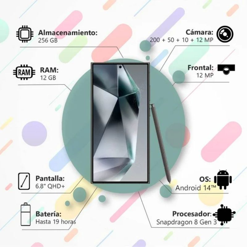 El Samsung Galaxy S24 Ultra es un smartphone de alto rendimiento diseñado para usuarios exigentes que buscan potencia, fotografía profesional y productividad avanzada. Incorpora el procesador Snapdragon 8 Gen 3, una pantalla AMOLED de última generación y un sistema de cámaras de nivel profesional, ofreciendo una experiencia fluida para trabajo, creación de contenido y uso diario intensivo.