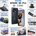 El Tecno Spark 30 Pro llega para quienes buscan un smartphone potente, elegante y lleno de tecnología actual. Su diseño moderno se complementa con una gran pantalla AMOLED de 6.78 pulgadas con resolución FHD+, que junto a su tasa de refresco de 120 Hz ofrece imágenes nítidas, fluidas y envolventes en todo momento.