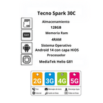 Tecno Spark 30C 128GB 4+4GB RAM en color negro es un smartphone de gama de entrada que combina diseño moderno, fluidez visual y un rendimiento confiable para el día a día. Ofrece una experiencia completa para usuarios que buscan funcionalidad y estilo en un solo dispositivo.
