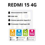 Sistema de cámara dual con IA de 50 MP. Disfrute de fotos nítidas y detalladas con la cámara principal de 50 MP y momentos fugaces con tomas dinámicas, que dan vida a las escenas cotidianas de una manera diferente. Redmi 15 es compatible con resistencia al agua y al polvo IP64, lo que proporciona una protección eficaz contra salpicaduras, polvo u otras situaciones esperadas.