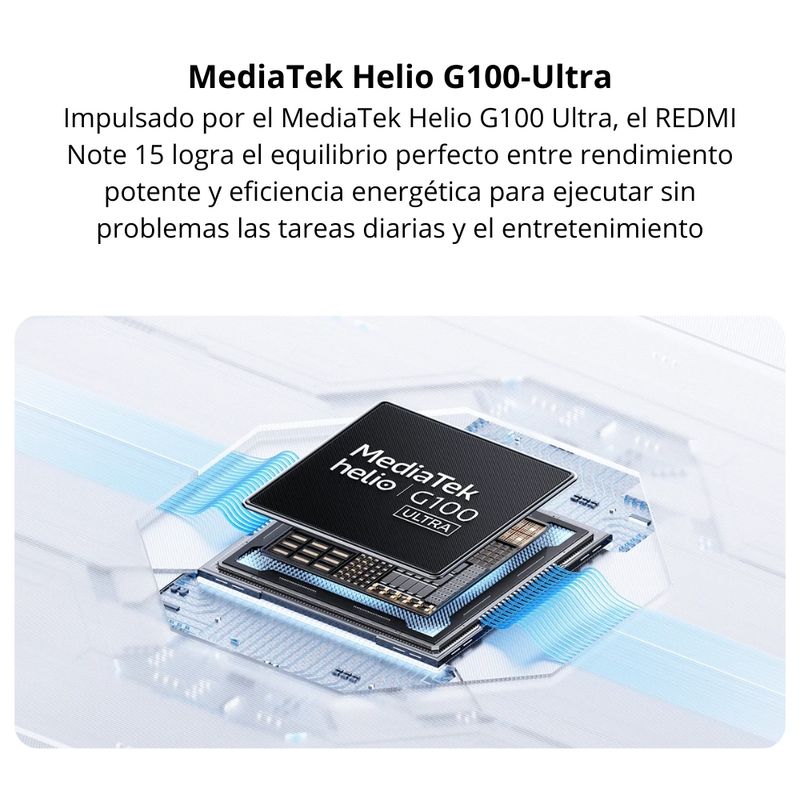 Equipado con el procesador MediaTek Helio G100-Ultra, este dispositivo ofrece un equilibrio eficiente entre potencia y consumo energético, ideal para multitarea y entretenimiento. Su batería de 6000mAh asegura largas horas de uso continuo, y la carga inversa de 18W permite alimentar otros dispositivos en cualquier momento.