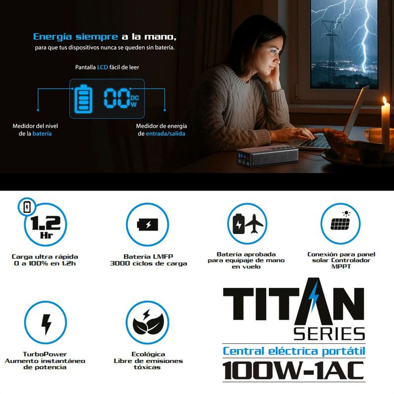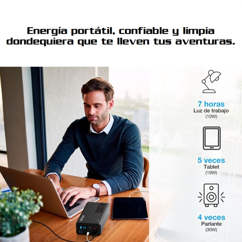 No es un simple power bank Es una central de energía portátil de 100W segura rápida y ecológica siempre lista cuando más la necesitas