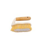 Cepillo multiusos con mango de bambú combinado con colores beige y amarillo. Utensilio práctico y manual que agiliza la limpieza de grandes superficies, garantizando eficiencia y comodidad. El mango de madera ofrece un agarre ergonómico, adaptándose perfectamente a la palma de la mano y simplificando la limpieza con este cepillo de diseño funcional y estético.